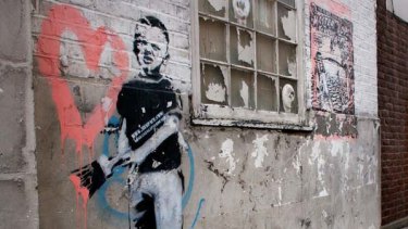 Banksy, anonymous british graffiti artist known for his antiauthoritarian art, often done in public places.